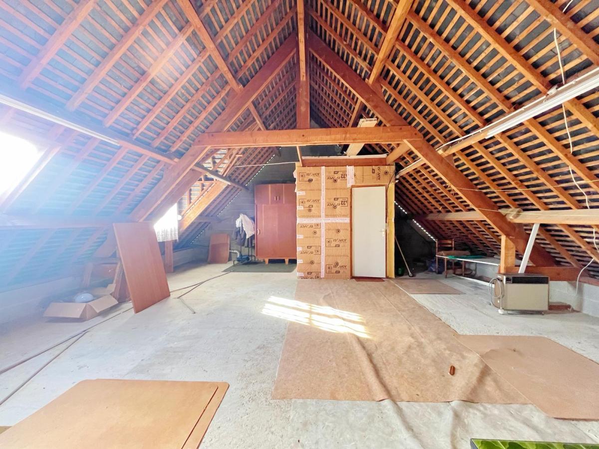 À l’étage, un grenier sur dalle béton accueille une chambre supplémentaire, une salle de bains et des WC.
